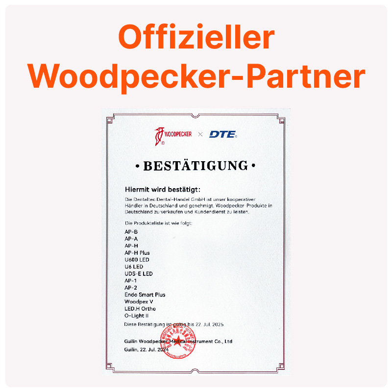 Profitieren Sie von den exklusiven Vorteilen unserer Partnerschaft mit Woodpecker! Als offizieller Vertriebspartner bieten wir Ihnen nicht nur die gesamte Palette an originalen Woodpecker-Produkten, sondern auch eine persönliche Beratung. Zusätzlich gewährleisten wir einen schnellen und zuverlässigen Service direkt in Deutschland für alle Woodpecker-Geräte. Vertrauen Sie auf Qualität und Fachwissen – mit DentaTec an Ihrer Seite!