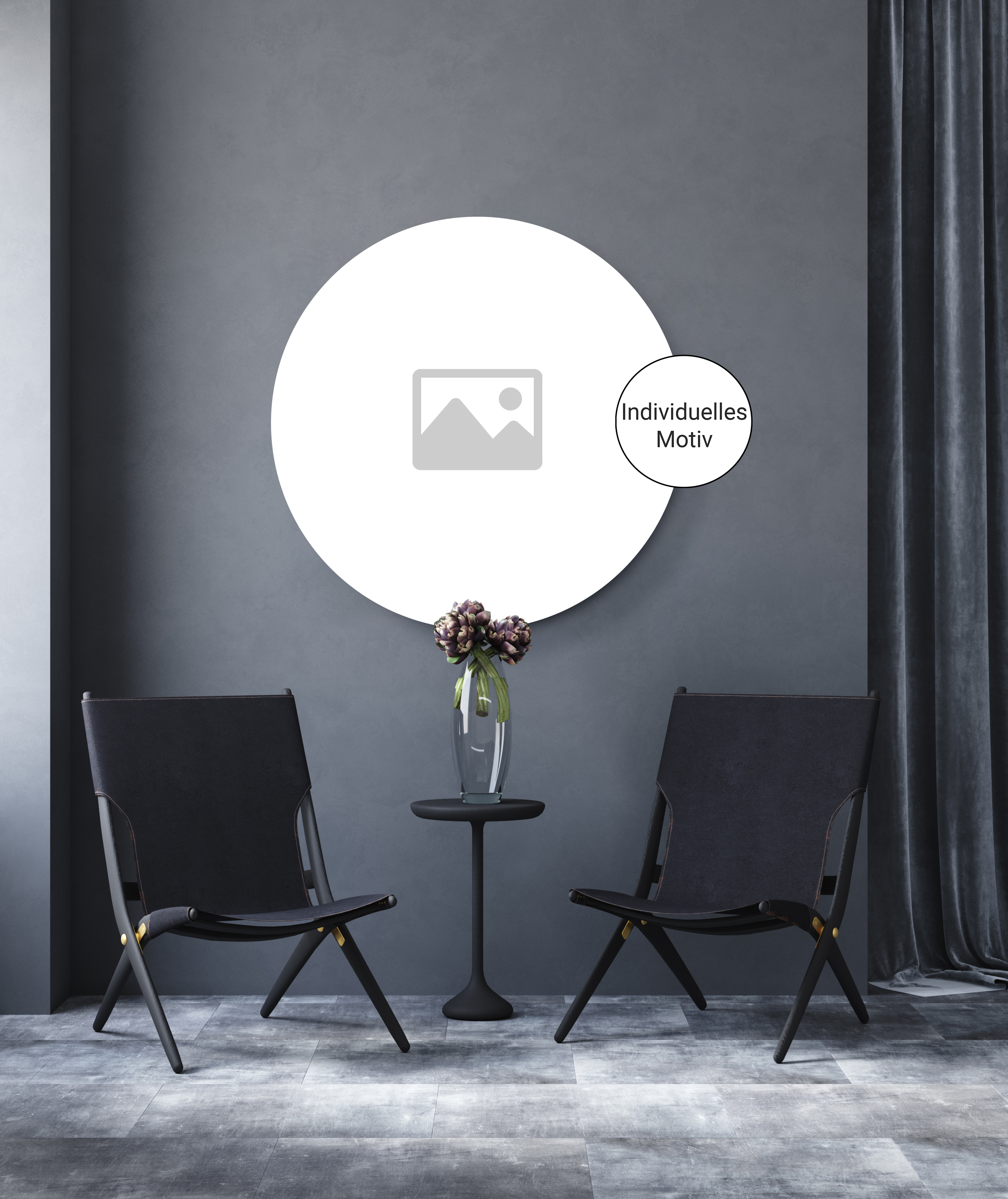 Produktinformationen "Akustikbild Rund – Hochwertiges Aluminium, 120x120 cm, Individuelles Motiv, Pflegeleicht, B1 Brandschutz, Nachhaltig, Recyclingfähig, Eloxiert/Pul"