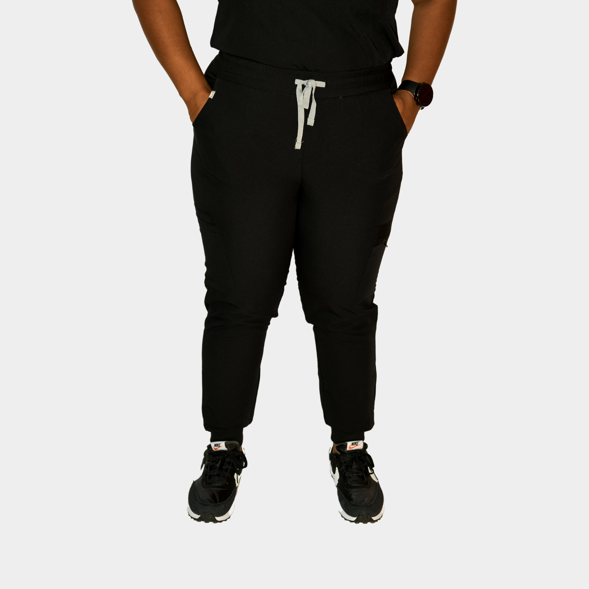 Ambou Jogger Kasack Hosen – FlexComfort, hoch geschnitten, schwarz, schmale Passform, 8 Taschen, Yoga-Hüftbund, Größe XXL