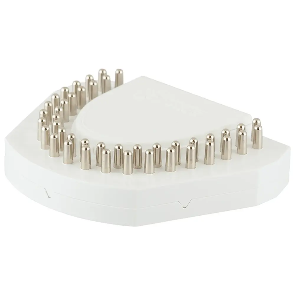 Mit ihrer robusten Konstruktion sorgt die Pinbasisplatte für eine sichere Fixierung der Modelle und ermöglicht eine einfache Handhabung während des gesamten Arbeitsprozesses. Die kompatible Größe gewährleistet eine optimale Integration in das Modellsystem 2000 und unterstützt eine effiziente Bearbeitung Ihrer dentalen Arbeiten.