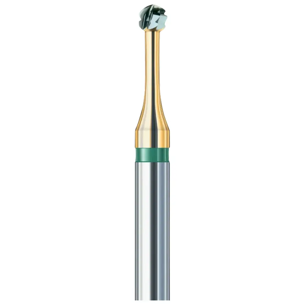 Jeder Bohrer ist mit einem grünen Ring gekennzeichnet, der für die schnittfreudige Verzahnung steht. Die verschiedenen Varianten ermöglichen ein zügiges Exkavieren: Der 1S Bohrer eignet sich für farbloses Exkavieren, während der 1SX mit einem vergoldeten Hals für vibrationsarmes Arbeiten sorgt. Der 1SXM bietet zusätzlich die Möglichkeit, bei eingeschränktem Zugang und freier Sicht effizient zu arbeiten, dank seiner schlanken Halskonstruktion.