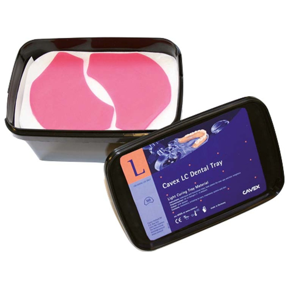 Mit seiner hohen Reiß- und Standfestigkeit sowie hohen Bruchfestigkeit bietet das Cavex LC Dental Tray eine zuverlässige Lösung für verschiedene zahnmedizinische Anwendungen. Die optimierte anatomische Plattenform sorgt für eine perfekte Anpassung an Unter- und Oberkiefer. Die pink opake Farbe verleiht den Trays eine ansprechende Optik, während die Aushärtung in nur 3 - 5 Minuten durch Halogen- oder UV-Licht eine effiziente Nutzung ermöglicht.