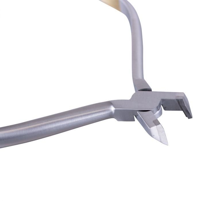 Zur sicheren Entfernung von Brackets dient dieser hochwertige silberfarbene Direct Bond Bracket Remover TC. Es handelt sich hier um ein Instrument, das aus rostfreiem Edelstahl, und zwar aus Wolframcarbit, gefertigt wurde. Dieser Stoff ist bekannt für seine besondere Härte und ist dadurch äußerst verschleißarm. Die ergonomische Form dieses Handinstrumentes ermöglicht ein ermüdungsfreies Arbeiten. Der Direct Bond Bracket Remover wurde darüber hinaus so konstruiert, dass die Behandlung an Patienten so schonend wie möglich vorgenommen werden kann.