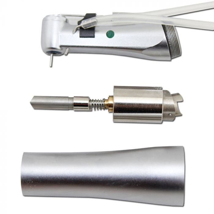 Mit einer Lautstärke von 70 dB unterscheidet es sich somit nicht von deinen sonst im Gebrauch befindlichen E-Instrumenten. Da das grüne chirurgische Winkelstück mit einem außen gelegenen Kühlmedium gefertigt ist, kannst du dich auf beste Performance und hochwertige Kühleigenschaften verlassen. Im Handling weist das Winkelstück höchste Ansprüche zu erfüllen und fällt durch die ergonomische Form auf, die in deinen chirurgischen Eingriffen von enormer Wichtigkeit ist. Die vielseitigen Einsatzbereiche, sowie das günstige Verhältnis von Preis und Leistung lassen deine Zahnarztpraxis mit diesem grünen Winkelstück perfekt ausrüsten.