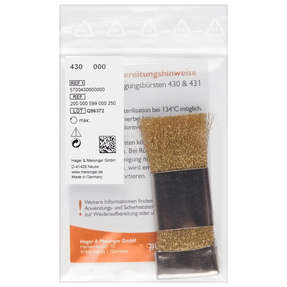Die Hager & Meisinger Reinigungsbürste 430 ist ein unverzichtbares Werkzeug für die gründliche Reinigung von Bohrern und anderen dentalen Instrumenten. Diese spezielle Schiebebürste ist mit hochwertigem Messingdraht ausgestattet und bietet eine effektive Lösung zur Entfernung von Ablagerungen und Verunreinigungen.
