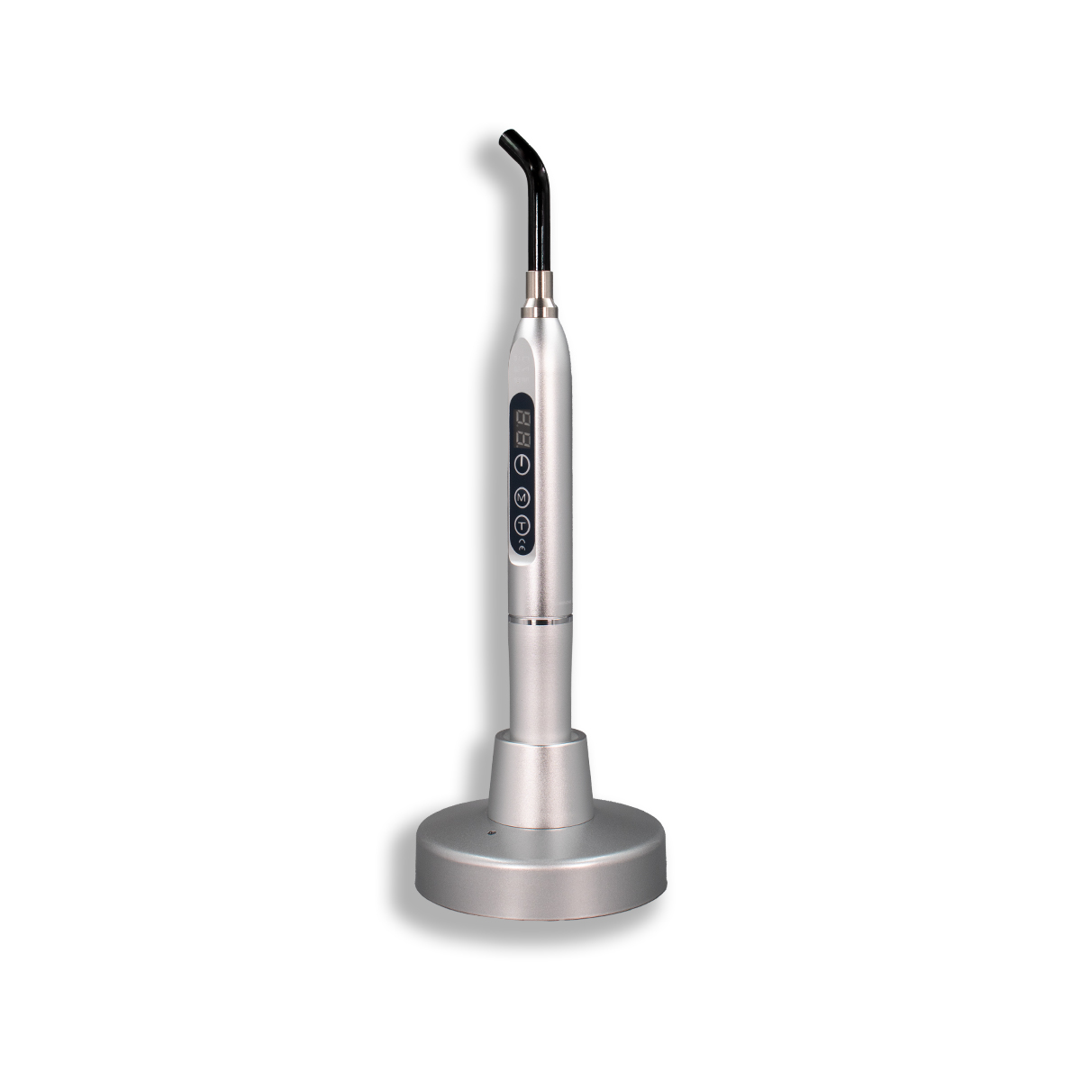 Mit diesem hervorragenden Instrument erwirbst du eine kabellose Polymerisationslampe mit Hochleistungs-LED, die ein rein dentales blaues Licht verströmt. Die Digitalanzeige erlaubt eine klare, intuitive Bedienung. Das Gerät verfügt über die drei Arbeitsmodi stark, allmählich stark, blinkend.