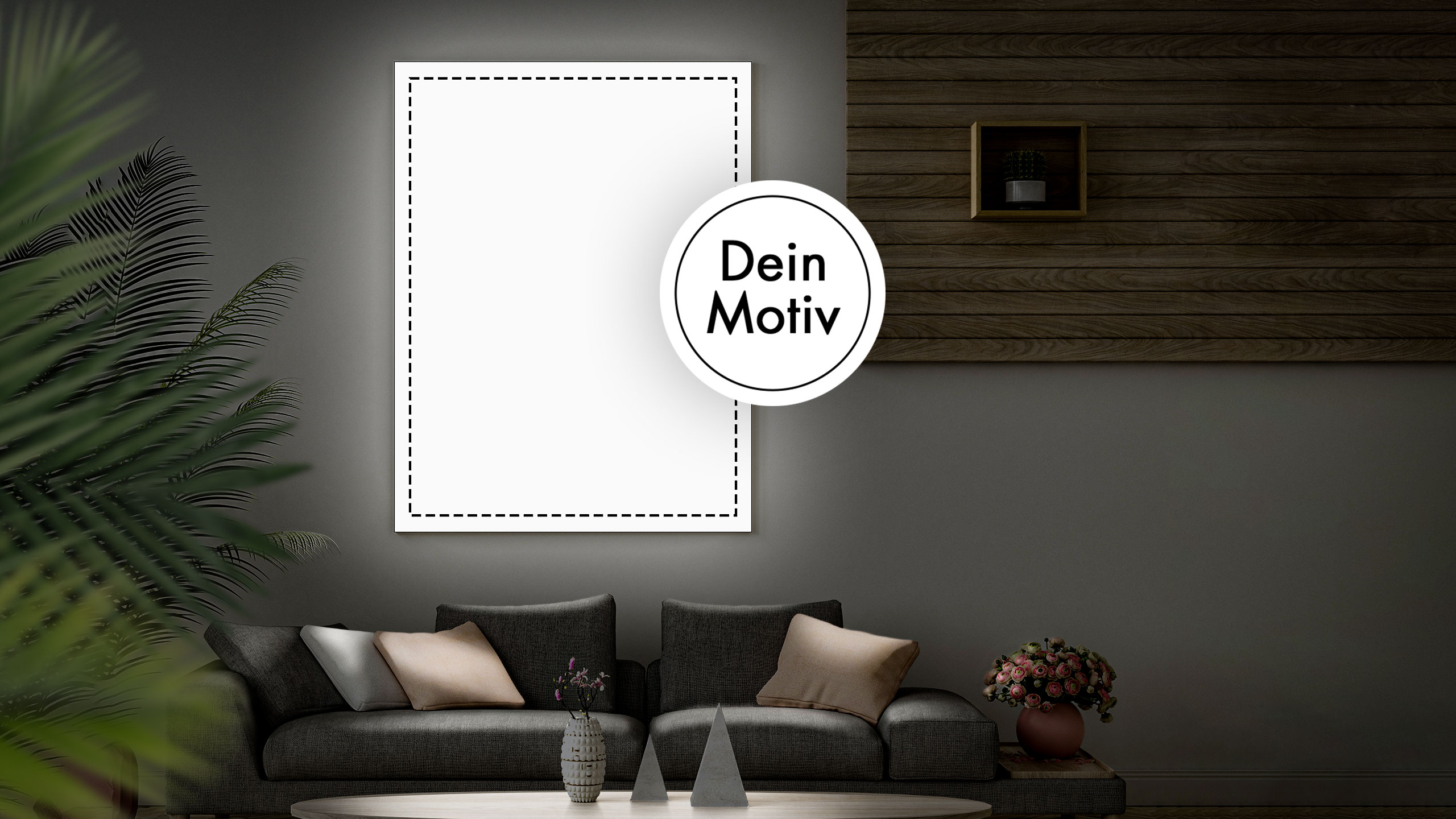 Der integrierte Vorschaltgerät im Leuchtkasten sorgt für eine unkomplizierte Installation, während das 2 m lange weiße Kabel mit einem EU-Stecker (Standardposition rechts unten) eine flexible Montage ermöglicht. Bei speziellen Positionierungswünschen können Sie diese gerne bei Ihrer Bestellung angeben. Zudem haben Sie die Wahl zwischen einem digitalen Textildruck in fotografischer Qualität oder einem weißen Blockout-Gewebe, das durch den umweltfreundlichen Sublimationsdruck mit wasserbasierten Tinten hergestellt wird. Der Motivwechsel erfolgt schnell und einfach dank der austauschbaren Textilbespannung.