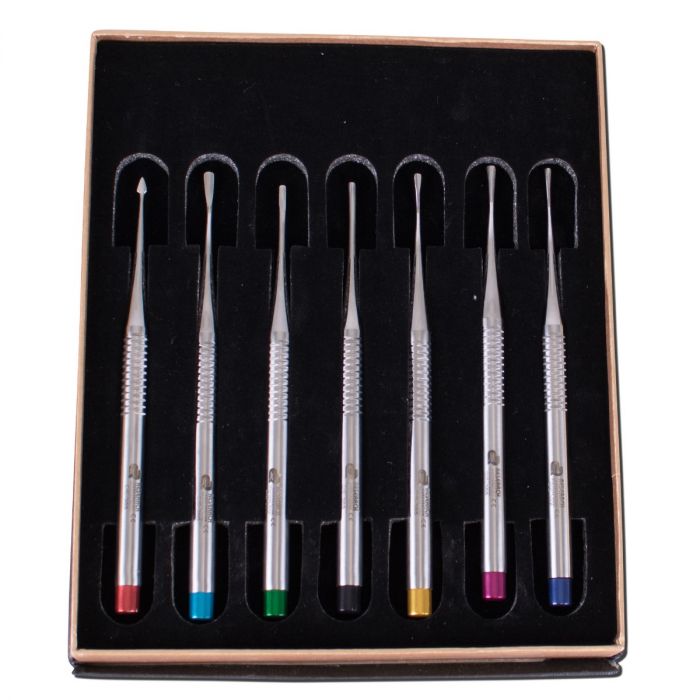 Jeder Wurzelheber aus hygienischem, rostfreiem Edelstahl erfüllt höchste ergonomische Ansprüche. Die einzelnen Instrumente sind farblich gekennzeichnet, um die Anwendung zu erleichtern und sind autoklavierbar und sterilisierbar. Die Griffform gewährt maximalen Haltekomfort, ermöglicht eine präzise Handführung und bietet darüber hinaus ein exaktes sowie ermüdungsfreies Arbeiten.
