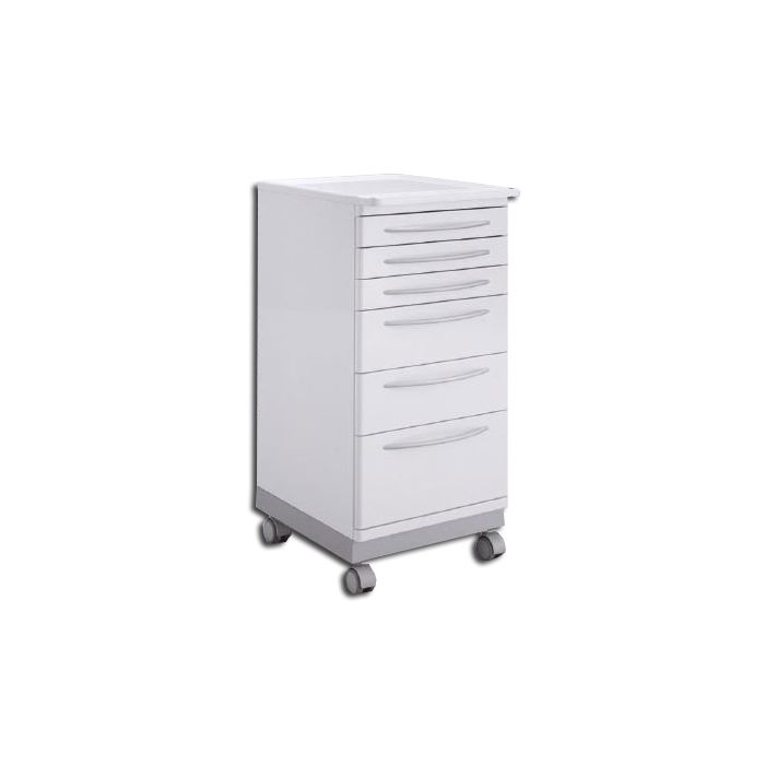 Zu den Einsatzgebieten dieses Rollwagens zählt die Chirurgie, Implantologie, Endodontie, Parodontologie und Prophylaxe. Aufgrund seines Stauraumes kann er für unterschiedlichste Aufgaben eingesetzt werden. Seine Ablacheflächen und seine sechs Schubladen bieten viel Strauraum. Damit finden Füllungsinstrumente, Excavatoren und Abdrucklöffel jeweils einen separaten Platz. Innerhalb dieses Carts ist zudem Platz für Zangen, Forminstrumente oder chirurgische Instrumente. Somit ist alles an einem Platz.