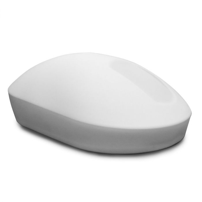 Die Purekeys Maus ist gemäß IP66-Standard abgedichtet und mit einer Schicht aus medizinischem Silikon versehen, das beständig gegenüber Desinfektionsmitteln, einschließlich Alkohol bis zu 80 %, ist. Dank des glatten Designs ohne Scrollrädchen wird die Reinigung vereinfacht. Die Scrollfunktion erfolgt durch leichten Druck mit den Fingerspitzen.