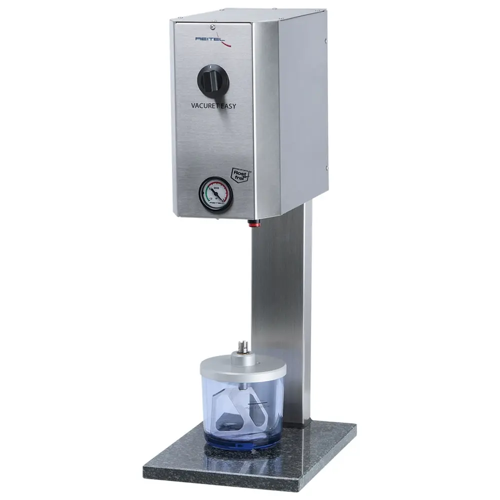 Das REITEL VACURET EASY ist ein leistungsstarkes Vakuum-Rührgerät, das speziell für die Anforderungen in der Zahnarztpraxis entwickelt wurde. Mit seiner hochwertigen integrierten Vakuumpumpe und dem manuellen Timer bietet es eine effiziente Lösung für die Verarbeitung dentaler Materialien.