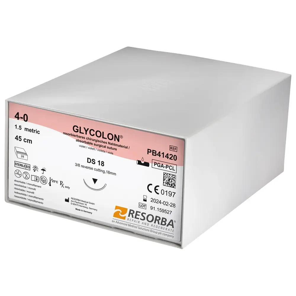 Das Resorba Medical Glycolon® ist ein hochwertiges, kurzfristig resorbierbares Monofilament, das speziell für chirurgische Anwendungen entwickelt wurde. Mit einer Länge von 45 cm und einer Stärke von USP 4/0 bietet es eine ausgezeichnete Lösung für präzise Nahttechniken.