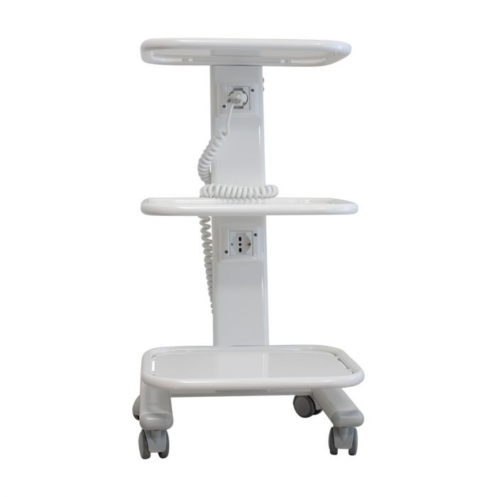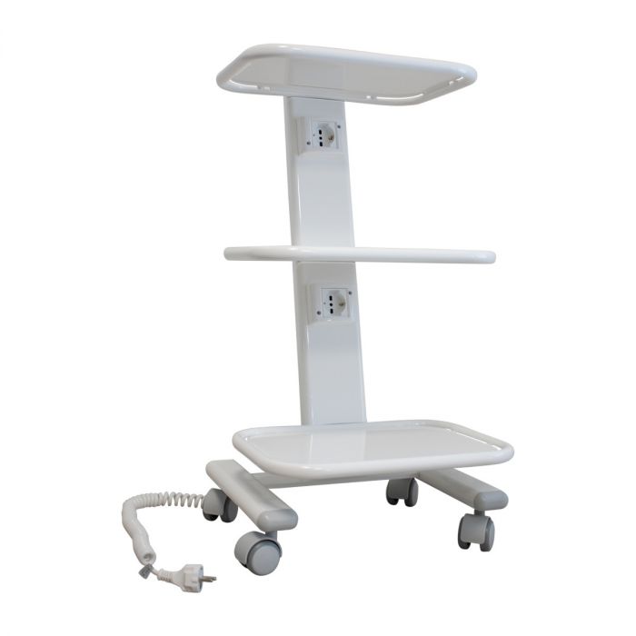 Seine vier Rollen ermöglichen eine gute Positionierbarkeit und ein schnelles Wechsels in andere Behandlungszimmer.Durch seine zwei Steckdosen ist er auch ideal zum Einsatz mit elektrischen Geräten geeignet.