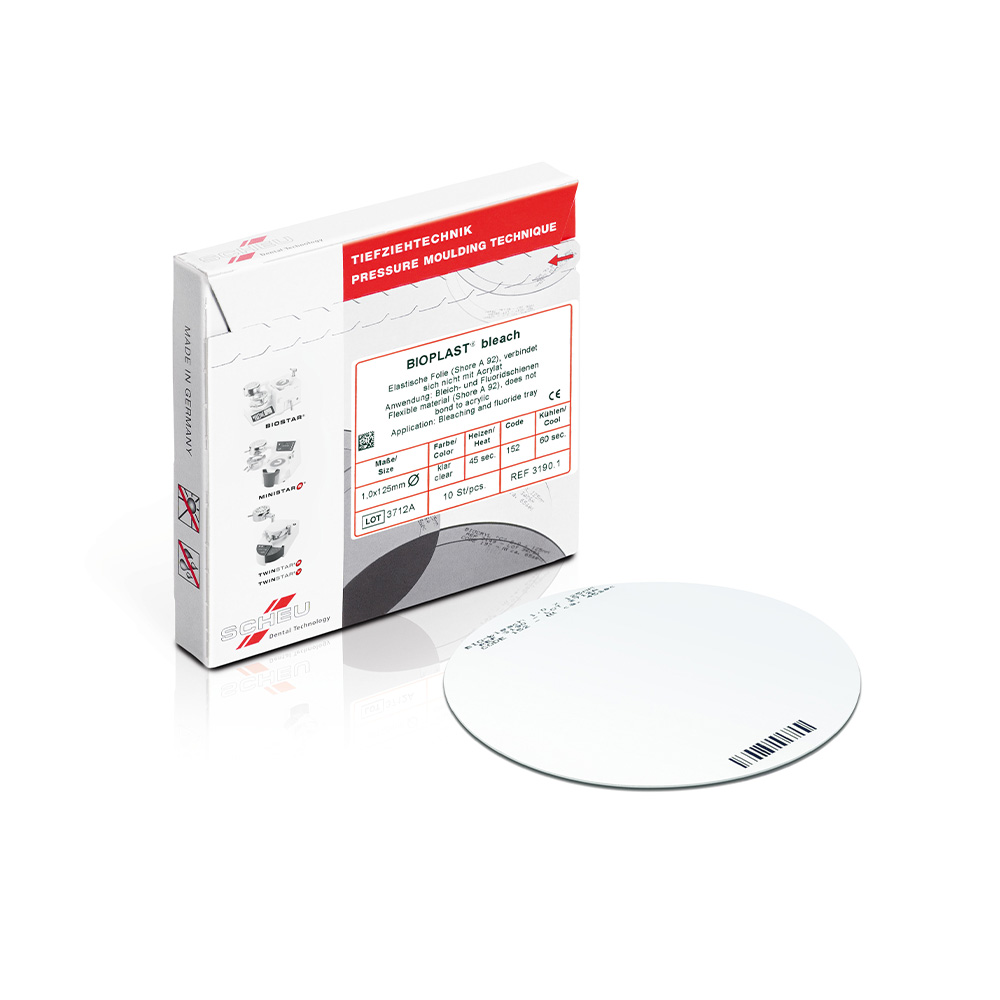 Produktinformationen "SCHEU-DENTAL BIOPLAST® bleach - Packung 10 Stück Ø 125 mm, Stärke 1 mm"