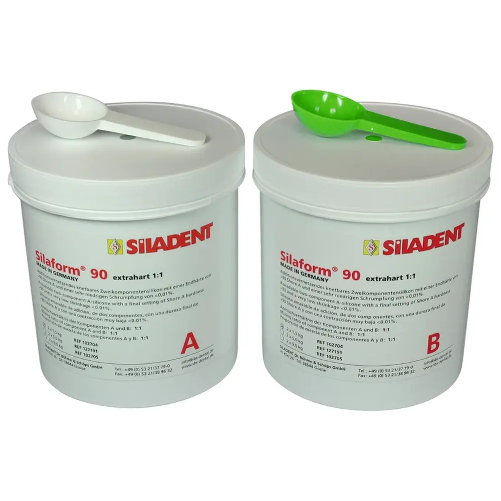 Das SILADENT Silaform® 90 ist ein hochleistungsfähiges, knetbares Zweikomponentensilikon, das speziell für anspruchsvolle Anwendungen in der Dentaltechnik entwickelt wurde. Mit einer Endhärte von über 90 Shore A nach 24 Stunden bietet es außergewöhnliche Stabilität und Langlebigkeit.