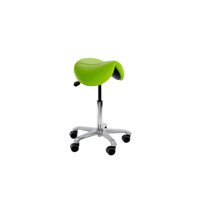 Das schmale Sattel-Design unterstützt zusätzlich eine ergonomische Arbeitsweise. Durch geringe Distanz zum Patienten, wird unnötiges Vorbeugen vermieden und dem beugt Verspannen der Rückenmuskulalur wird vorgebeugt. Gleichzeitig ist der Sattel etwas breiter als bei anderen Modellen und erlaubt dadurch ein stabiles Sitzen.