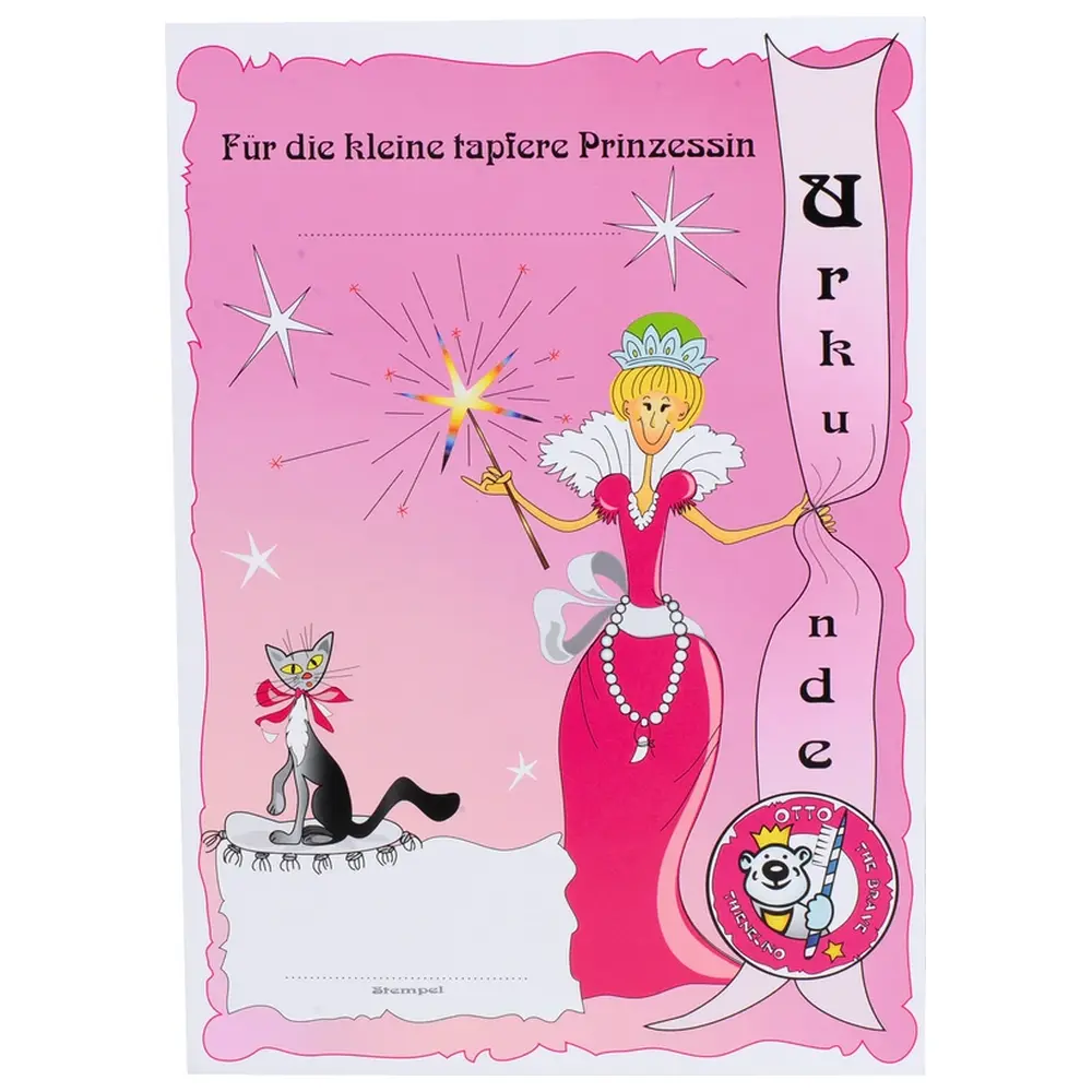 Für die kleinen Mädchen gibt es eine Variante mit einem aufgeklebten 3D-Sticker, der der Urkunde eine besondere Note verleiht. Die Jungen hingegen können sich über eine Urkunde freuen, die einen mutigen Ritter zeigt – ein Symbol für Tapferkeit und Stärke. Beide Designs sind darauf ausgelegt, den Kindern ein Gefühl der Anerkennung und Freude zu vermitteln.
