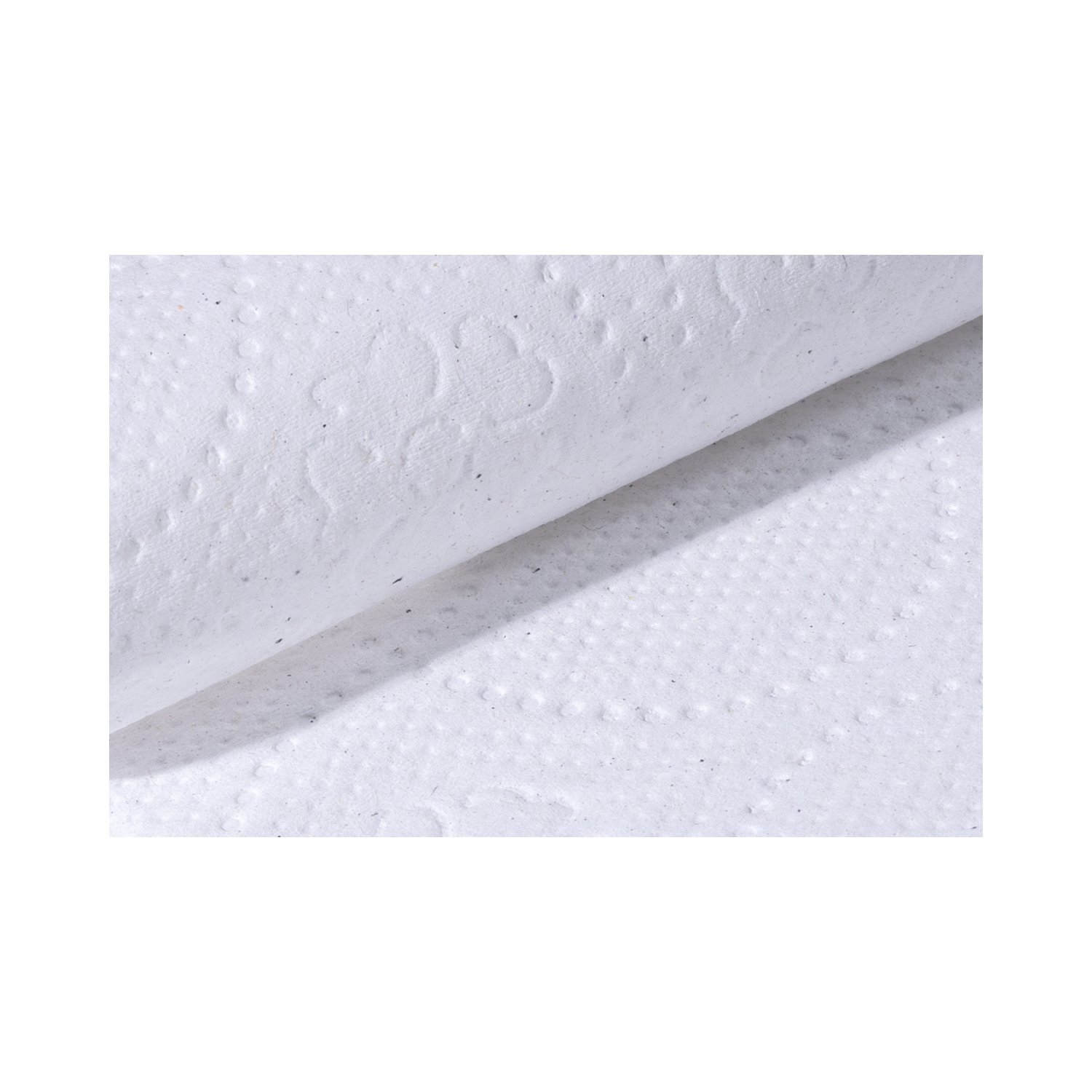 Die hochweiße Qualität mit einem Weißgrad von 75° sorgt für ein ansprechendes Erscheinungsbild, während die Blattgröße von 9,40 x 11,00 cm optimale Handhabung garantiert. Jede Rolle hat einen Durchmesser von 10,5 cm und eine Hülse mit einem Ø von 4,00 cm, was die Integration in gängige Halterungen erleichtert. Mit einer Länge von 27,5 m pro Rolle und einer Verpackungseinheit von 8x8 Rollen pro VE ist dieses Toilettenpapier sowohl praktisch als auch wirtschaftlich.