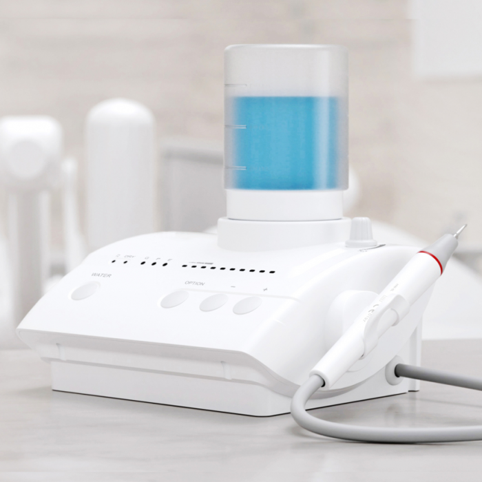 Der Ultraschallscaler erfüllt höchste Ansprüche und präsentiert sich in hochwertiger, stabiler Qualität. Inklusive Wassertank und einfacher Programmierung in drei verschiedenen Modis findet das Gerät in der zahnärztlichen Praxis vielseitig Anwendung und überzeugt mit Nutzer- und Bedienfreundlichkeit. Die Programmierung der kHz Frequenz erfolgt über Tasten direkt am Gerät. Der Wasserdruck wird über einen Drehregler am Ultraschallscaler eingestellt. In der Behandlung von Wurzelkanälen überzeugt das innovative und moderne Gerät mit maximaler Wirkung und einfacher Handhabung. Spezielle Endonadeln, sowie der Einsatz von Hydrogen Peroxiden, Chlorhexidinen und Sodium Hypochlorite.