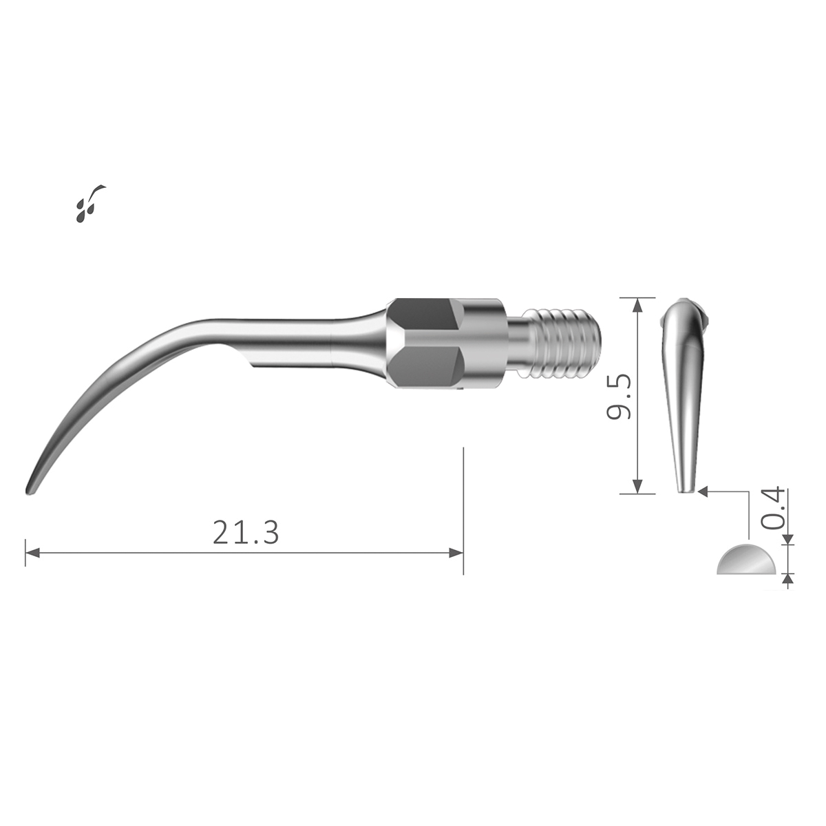 Diese Ultraschall-Spitze Nr. 1 ist ebenso, wegen der abgeflachten Seite, perfekt für Applikationen im Rahmen der Interdentalräume geeignet.