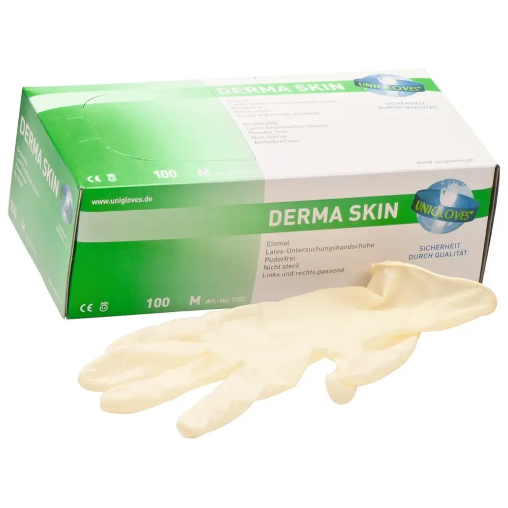 Die Unigloves DERMA SKIN Latexhandschuhe bieten optimalen Schutz und Komfort für medizinische Anwendungen. Diese unsterilen, puderfreien Handschuhe sind aus hochwertigem Naturlatex gefertigt und gewährleisten eine hervorragende Passform und Sensibilität während der Anwendung.