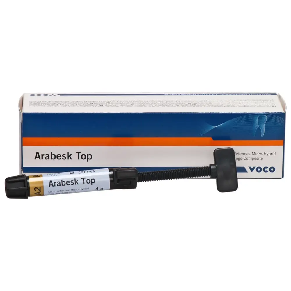 Das VOCO Arabesk Top ist ein lichthärtendes Glaskeramik-Mikrohybrid Composite, das speziell für Füllungen aller Klassen und Inlays entwickelt wurde. Mit seiner neuartigen Harzmatrix und der innovativen Dual-Glaskeramik-Füllerstruktur bietet es eine herausragende Anwendungsfreundlichkeit und hervorragende Ergebnisse in der Zahnarztpraxis.
