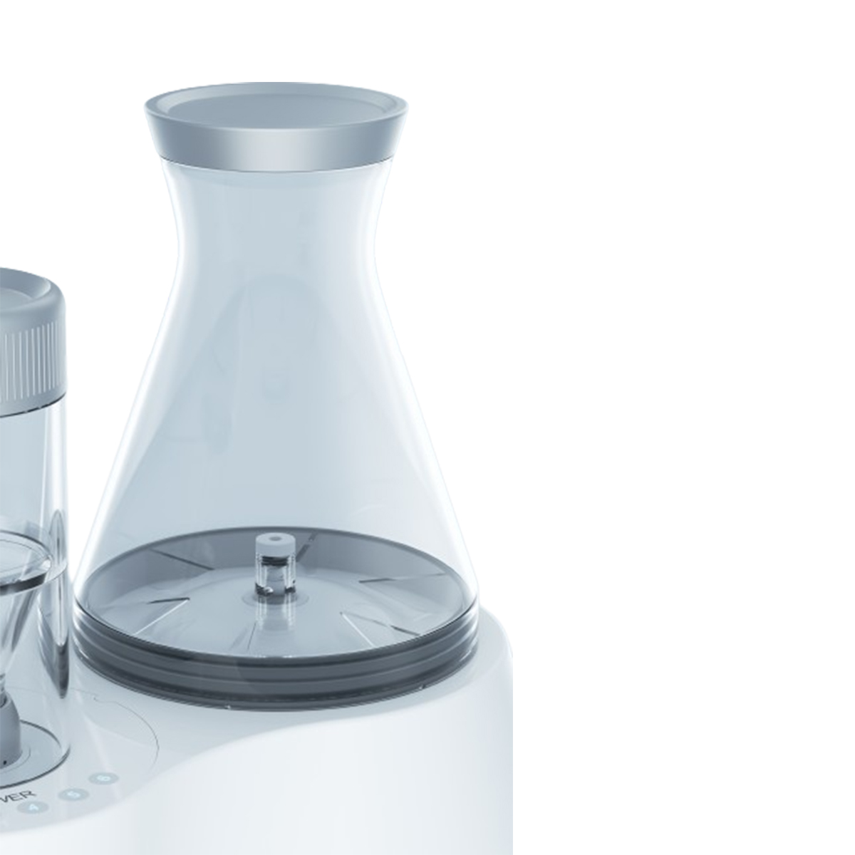 - Vollständig transparenter Pulverbehälter in Trichterform für stabilen Pulverausstoß