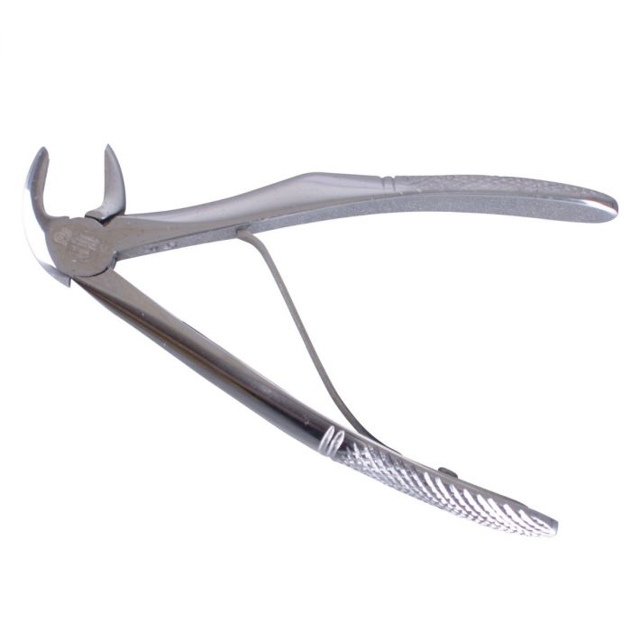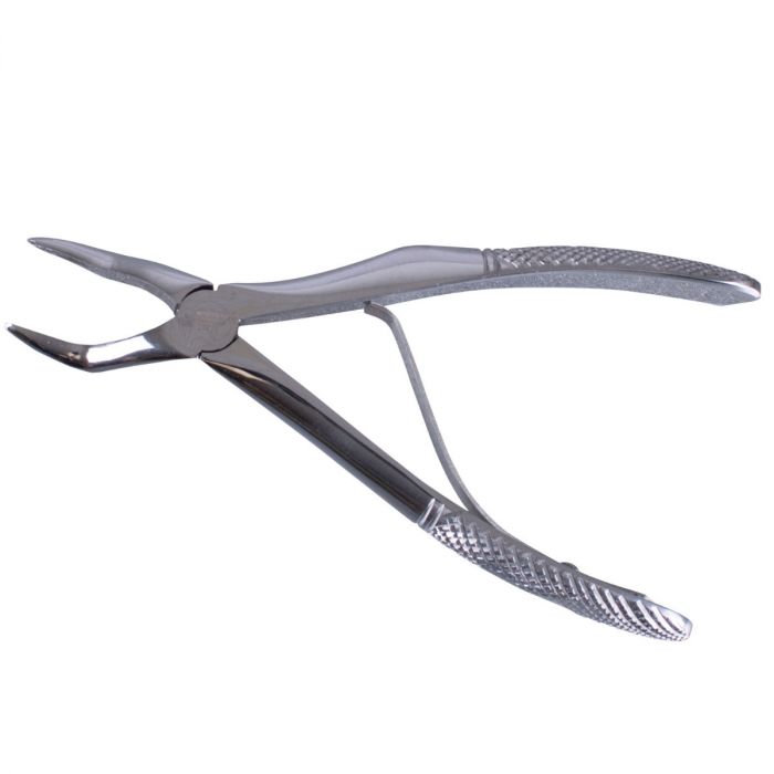 Das Zahnziehen ist für Kinder oft eine unangenehme und angstbesetzte Erfahrung. Es sind oft die ersten Erfahrungen beim Zahnarzt, die darüber entscheiden, mit welchem Gefühl die Kinder und später auch die Erwachsenen zum Zahnarzt gehen. Um diese Erfahrung so schonend wie möglich zu gestalten, brauchen Zahnärzte spezielle Instrumente, die an die Größe und Form der Kinderzähne angepasst sind. Ein Zahnzangen-Set für Kinder ist ein Satz von Zahnzangen, die für die Extraktion von Milchzähnen oder bleibenden Zähnen bei Kindern geeignet sind. Für ein sicheres Arbeiten unter erschwerten Bedingungen im kleinen Kindermund bedarf es besonderer Instrumente. Dieses Zangen-Set für Kinderzähne bietet die richtige Zange in englischer Form für jeden Zahn. Das Set ist 7-teilig und sorgt durch unterschiedliche, genau an die anatomischen Gegebenheiten, angepasste Formgebung bei jeder Extraktion für einen festen Griff. Zum Teil ermöglichen diese Zangen ein vollständiges Umfassen eines Zahnes und damit einen besonders sicheren Halt.