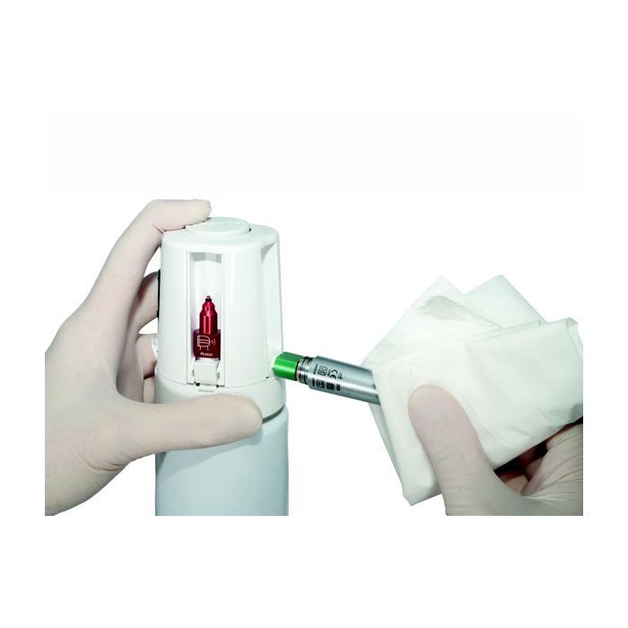 In vielen Handstücken stellt der Rotor ein teures Ersatzteil dar. Um frühzeitigen Verschleiß und daraus resultierenden Ersatz zu vermeiden, sollte die Turbinen und Winkelstücke regelmäßig mit Schmierstoff gereinigt werden.