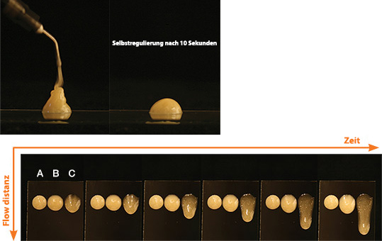i-FLOW hat eine ausgeglichene Viskosität, es fließt eben und bietet ideale selbstregulierende Eigenschaften. Gleichzeitig verläuft das Produkt nicht und bleibt ordentlich an der Stelle.