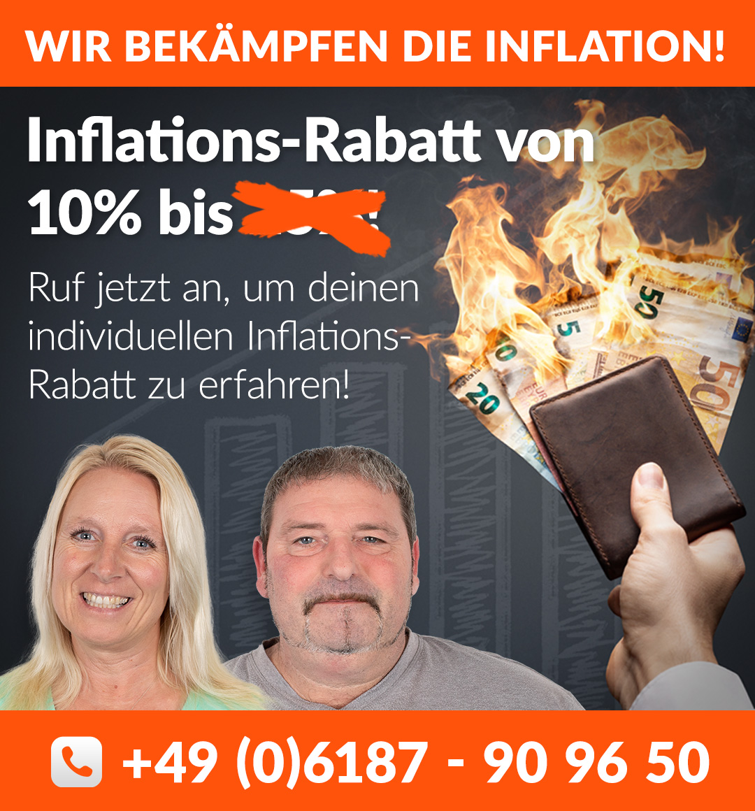 Rufe noch heute an und sichere dir deinen Inflations-Rabatt von mindestens 10%.