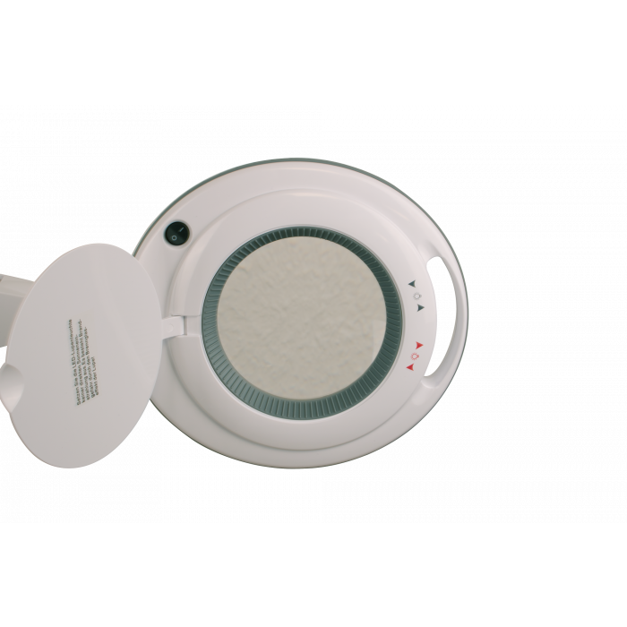 Die Farbtemperatur des Lichtes kann durch Dimmen der beiden LED- Farben in warm- weißes und kalt- weißes Licht, je nach Ihren Arbeitserfordernissen, individuell eingestellt werden. Darüber hinaus gibt esdie Option, die Linse gegen die alternativ erhältliche 5- Dioptrien- Linse (2,25 fach) auszutauschen. Weiterhin sind zusätzlich zu der mitgelieferten Tischklemme Halterungen für die Tischaufstellung und für die Wand- und Tischmontage erhältlich.