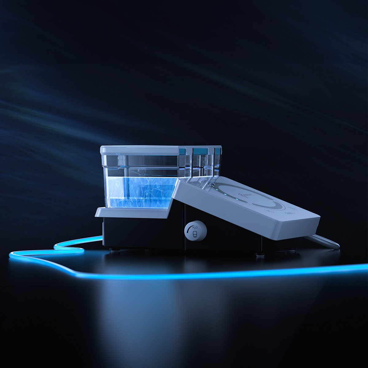 Der übersichtliche Smart-Touchscreen lässt sich nicht nur intuitiv bedienen. Durch die wasserdichte Konstruktion und das glattflächige Design des Ultraschallscalers kann das Gerät auch schnell und einfach gereinigt und desinfiziert werden. Das Handstück ist bei 134°C autoklavierbar. Durch Tastendruck wechselst du schnell zwischen der externen Wasserversorgung und dem integrierten Wassertank und über einen Drehregler lässt sich der Wasserdurchfluss optimal einstelle. Ein Druckluftanschluss ist zum Betrieb des Dental-Scalers nicht erforderlich.