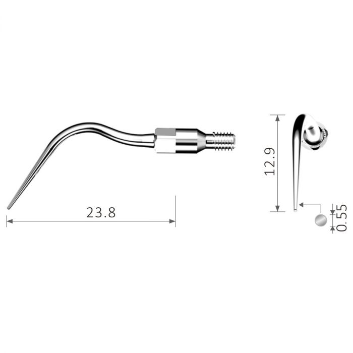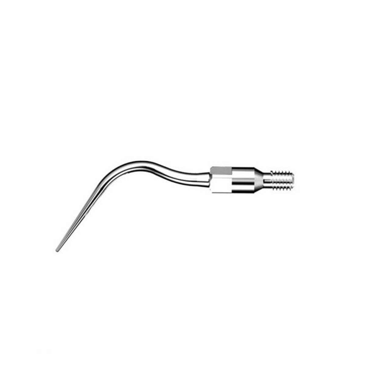 Die Parodontologie-Spitze mit Rechtskrümmung ermöglicht die gründliche Zahnsteinentfernung und Reinigung an schwer zugänglichen Oberflächen der Zahnwurzel und somit einen optimalen Zugang. Das schlanke Instrument mit rechts gekrümmter Spitze erleichtert die Zahnsteinentfernung besonders im subgingivalen Seitenzahnbereich. Konkremente an Wurzelfurkationen und im Approximalbereich lassen sich so effektiv entfernen. Die Länge der Spitze ermöglicht eine gründliche Reinigung bis in tiefe Zahnfleischtaschen. Die Spitze ist kompatibel zu Handstücken (Airscaler) NSK®.