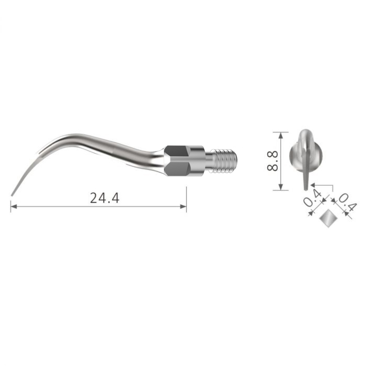 Die Sirona®-kompatible Spitze kann in allen Bereichen eingesetzt werden. Sie ist jedoch besonders für das Scaling von Zahnflächen im Bereich oberhalb und unterhalb des Zahnfleisches sowie in Zahnzwischenräumen ausgelegt.